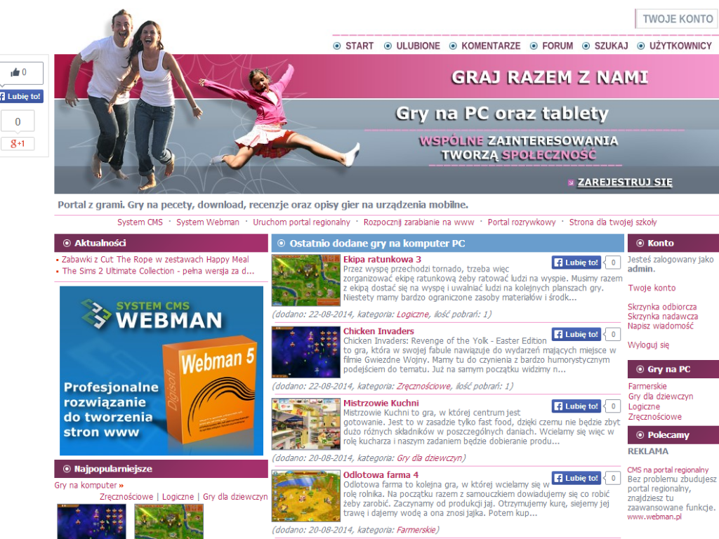 Dodatkowo strona z takim układem może zarabiać na sprzedaży gier komputerowych w połączeniu z programem partnerskim firmy Alawar.pl.