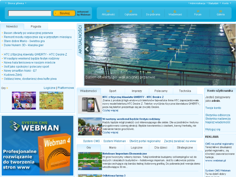 Pozostałe opcje prekonfiguranej treści pozostały praktycznie bez większych zmian, trzeba jednak pamiętać, że układ strony jest dostosowany do danego szablonu i przy jego zmianie wymiary poszczególnych elementów mogą nie być dokładnie dopasowane.